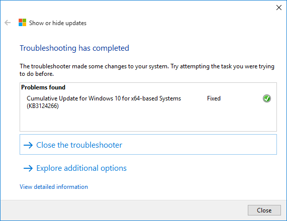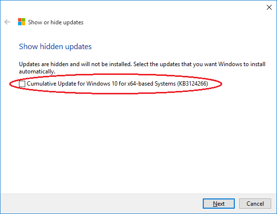 如果您以後決定重新啟用之前禁用的更新,則必須重新啟動該工具並選擇“顯示隱藏的更新“,選擇禁用的更新並繼續。這些更新現在將再次由 Windows 10 更新自動安裝。