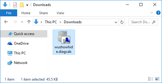 - 從以下位置下載疑難解答工具微軟的網站。單擊下載鏈接時,系統將提示您打開或保存 wushowhide.diagcab 文件(約 45.5 Kb)。