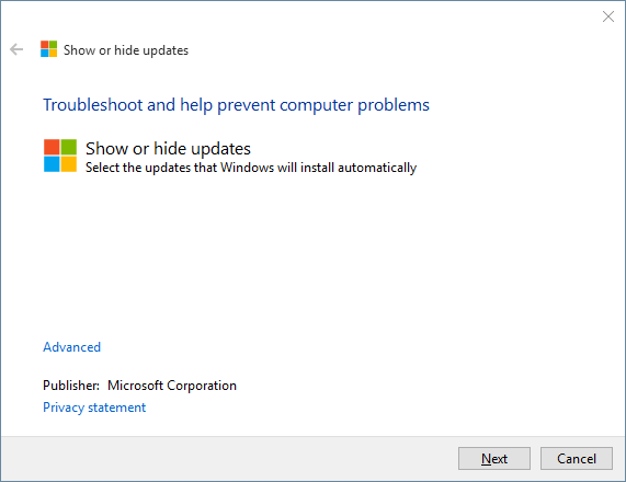 - 雙擊 wushowhide.diagcab 文件以啟動疑難解答程序。點擊下一個繼續。