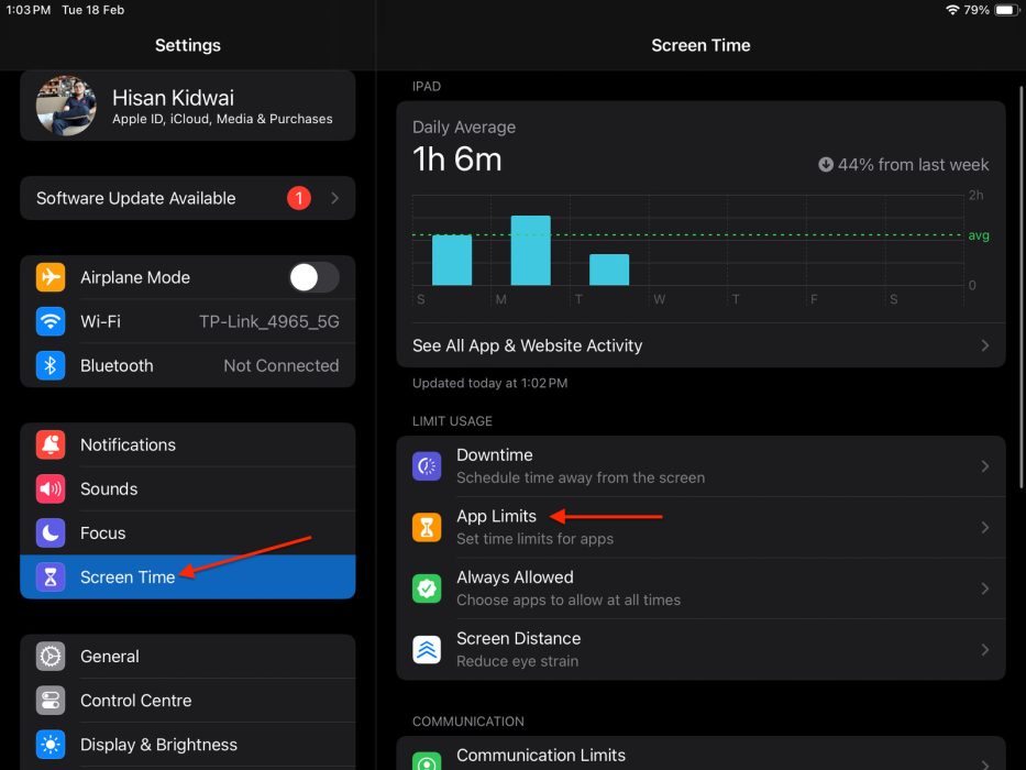 - 打開“設置”應用程序並前往“屏幕時間”。