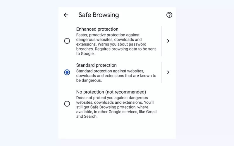 - 輕敲安全瀏覽並選擇增強保護選項。