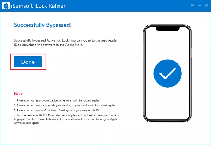 iLock Refixer 並選擇繞過ID>開始再次,這將立即開始