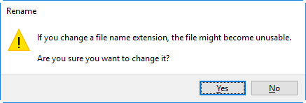 步驟 2:將 .docx 擴展名更改為 .zip 擴展名,出現提示時,只需確保您要更改即可。
