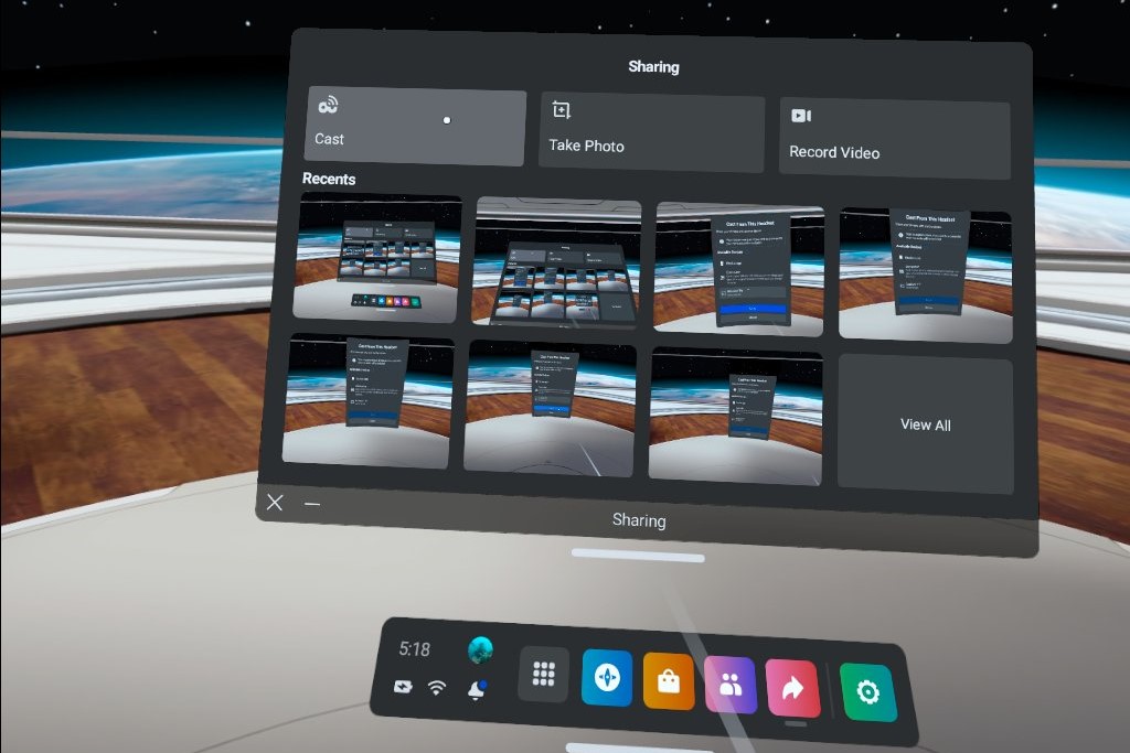 您可以通過按停止投射 Oculus Quest 2眼環按鈕打開通用菜單。點擊分享並選擇投擲。您現在可以通過選擇結束流停止投射。