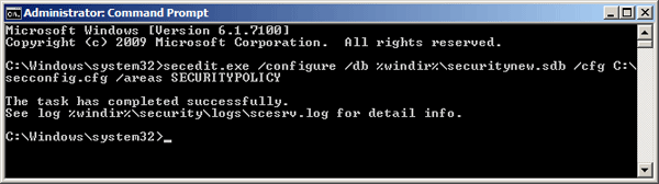 secedit.exe /configure /db %windir%\securitynew.sdb /cfg C:\secconfig.cfg /areas SECURITYPOLICY