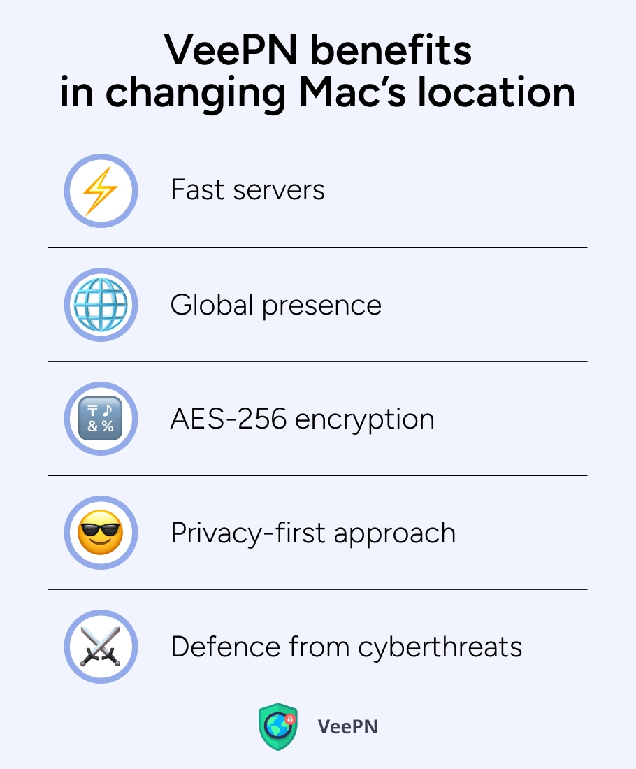 如果您正在尋找適用於 Mac 的 VPN 來輕鬆更改位置,VeePN 是一個不錯的選擇。原因如下: