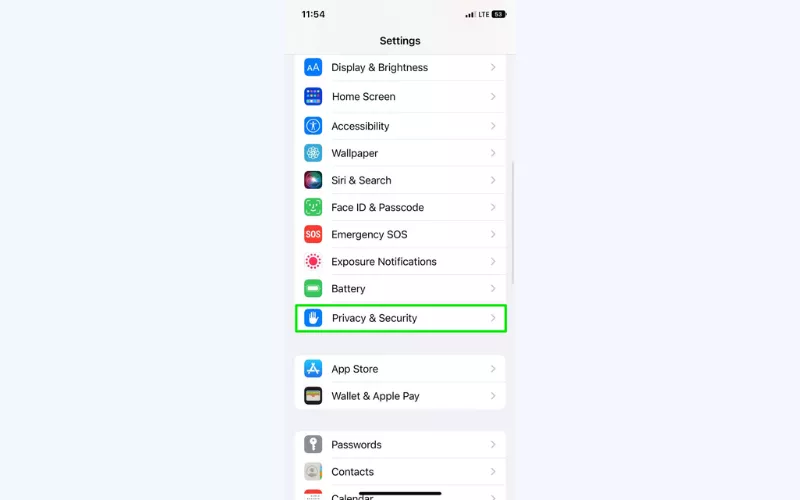 - 選擇隱私與安全選項 (iOS) 或應用程式或者應用列表(安卓)。