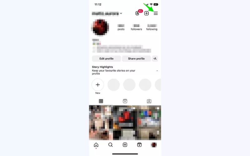 - 前往您的個人資料頁面並點擊三條水平線屏幕右上角的菜單。