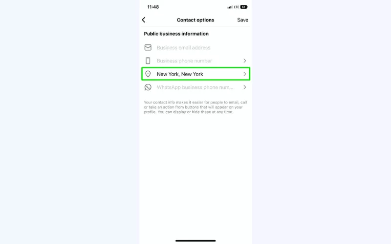 僅當您將個人資料類型更改為業務簡介在創作者工具和控件應用程序設置部分。完成後,請執行以下步驟來自定義您的位置: