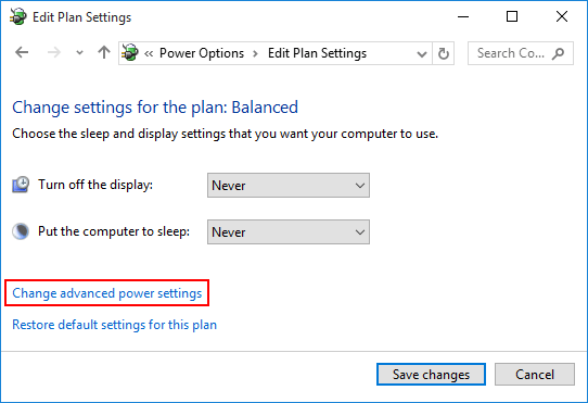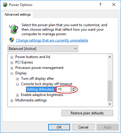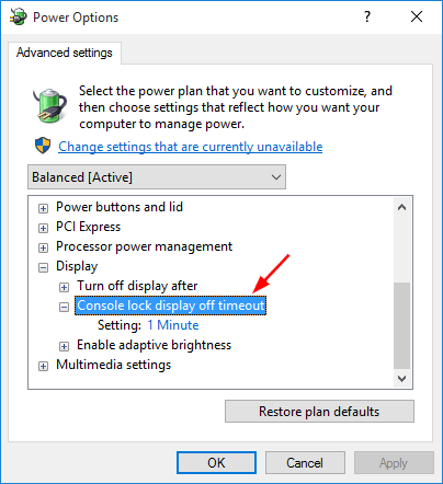 - 編輯註冊表後,您將立即看到一個新選項(控制台鎖定顯示關閉超時) 在高級電源設置中調整您的電源計劃。
