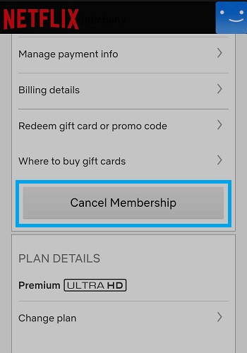 4。向下滾動並點擊“取消會員資格”以確認您的決定。