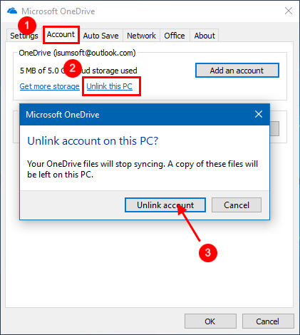 第 2 步:選擇帳戶選項卡,然後單擊取消與這台電腦的鏈接。點擊取消賬戶關聯按鈕確認。
