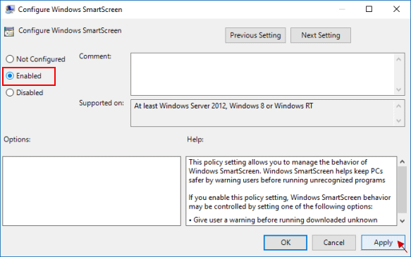 使用此選項,您可以輕鬆管理 Windows SmartScreen 的行為。