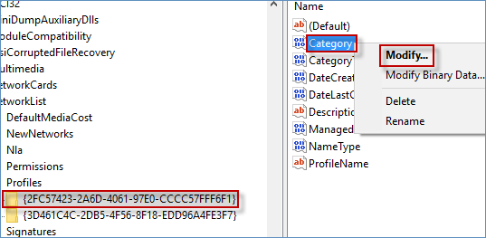 方式1:將網絡類型從註冊表編輯中從私有到公共