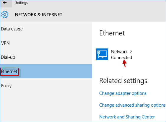 提示:或者當您設置網絡時打開或者關閉對於以太網連接,您也可以回到此網絡和互聯網窗口選擇網絡和共享中心選項檢查網絡是否已更改為私人或公共。 (請參閱下圖)