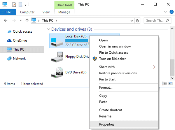 - 單擊特性按鈕位於硬盤驅動器旁邊,而不是卷旁邊。