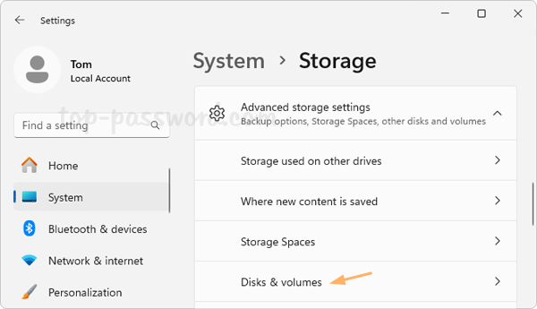 - 在“存儲管理”部分下,單擊“高級存儲設置“ 選項。
