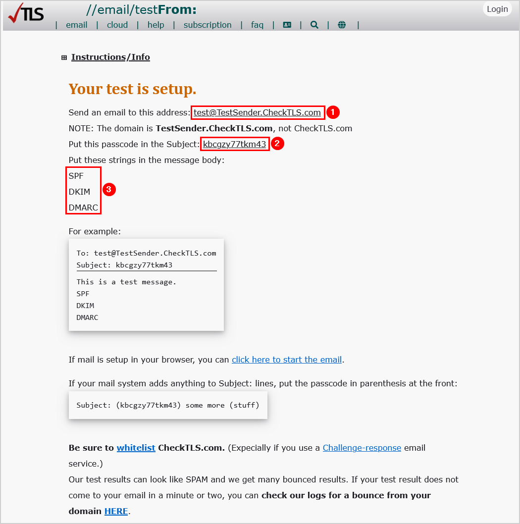 為了簡化流程並檢查郵件標頭,您可以將測試電子郵件發送至檢查TLS。 CheckTLS 網站可讓您查看外發電子郵件的安全性。您的收件箱將收到一封電子郵件,告知您 SPF、DKIM 和 DMARC 設置是否正確。它適合那些想要檢查其電子郵件是否安全且符合所有法律法規的人。