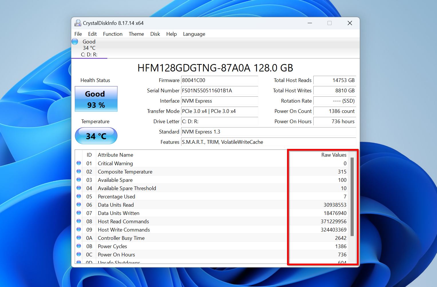 - 看看原始值每個 SMART 屬性旁邊,查看該值是否異常高或低。使用本指南作為參考點。