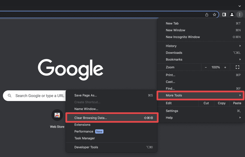 請按照以下步驟清除 Google Chrome 上的緩存: