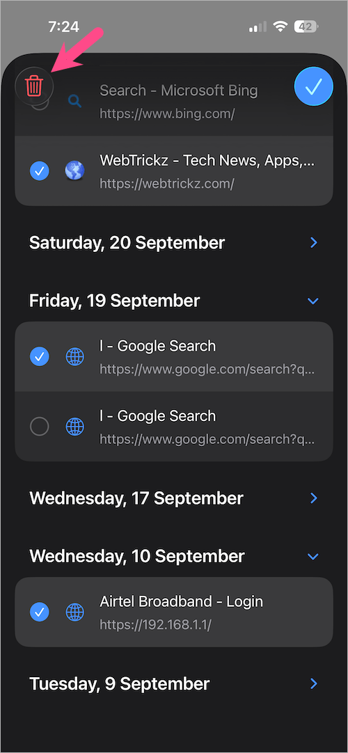 - 現在,您將看到您訪問過的所有網站的列表,按日期排列。