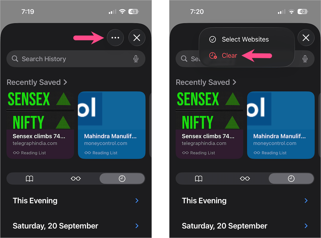 - 輕敲書籤,然後點擊時鐘圖標(歷史記錄選項卡)。