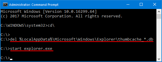 del %LocalAppData%\Microsoft\Windows\Explorer\thumbcache_*.db