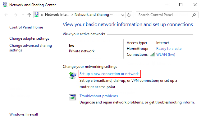 右鍵單擊無線網絡圖標然後選擇開放網絡和共享中心。