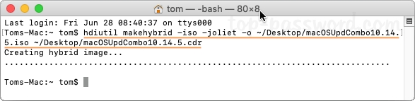 hdiutil makehybrid -iso -joliet -o ~/Desktop/filename.iso ~/Desktop/filename.cdr建議閱讀:將可啟動 USB 轉換為 ISO Windows 10 的 2 種免費方法