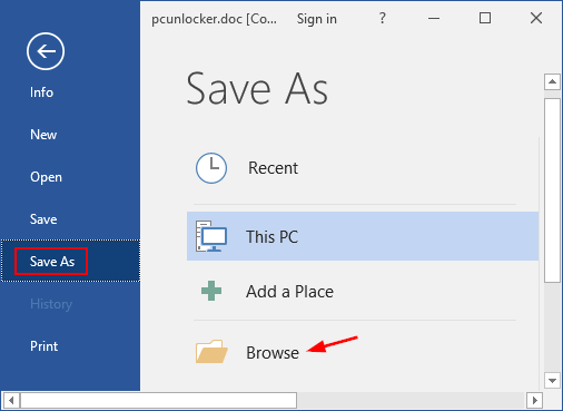 - 切換到另存為選項卡並單擊瀏覽按鈕來選擇您想要的位置。