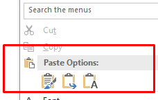 右鍵單擊 Word 文檔並選擇粘貼菜單: