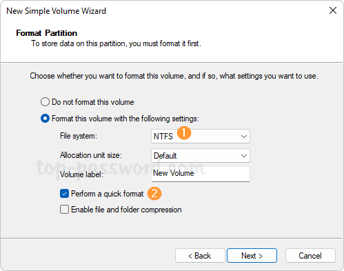 - 這新的簡單卷嚮導啟動,然後按下一個直到嚮導完成。