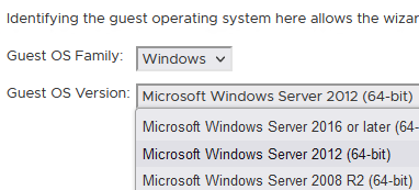 - 然後指定來賓操作系統系列和版本。這決定了在安裝 VMware Tools 和虛擬機的一些附加功能期間將安裝哪個映像。如果您要在虛擬機上安裝的操作系統版本未列出,請選擇最接近的操作系統版本;