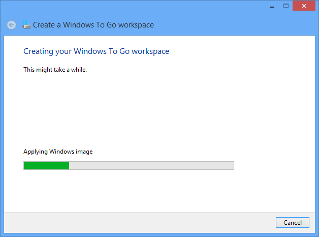 - 執行此步驟後,它將開始在您的 USB 驅動器上安裝 Windows 8。整個過程大約需要 30 分鐘,具體取決於運行該程序的硬件。