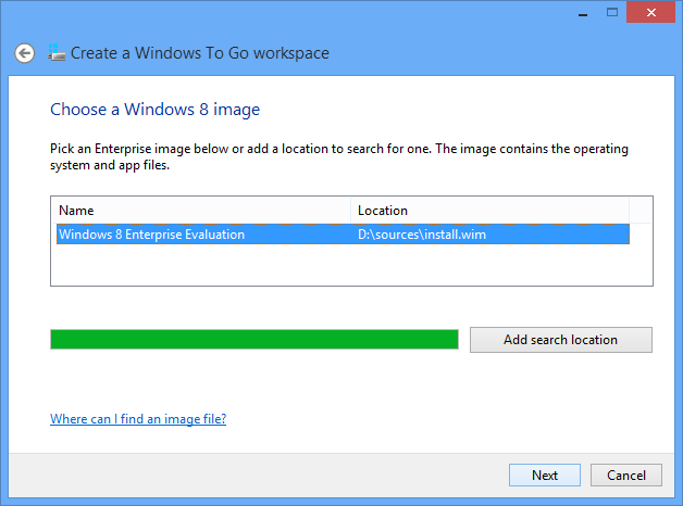 Windows To Go Creator 僅在 Windows 8 企業版中可用。但使用免費軟件 ISO2Disc,只要您擁有 Windows 8 ISO 映像,您就可以在任何版本的 Windows 中創建 Windows To Go USB 驅動器。