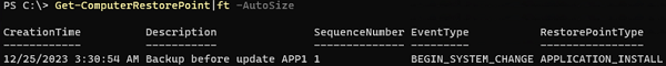 此外,您還可以通過 PowerShell 提示符手動創建還原點: