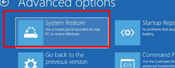 您將能夠在離線模式下恢復 Windows 的狀態。將計算機啟動到 Windows RE 恢復環境並選擇系統恢復從菜單中。系統將提示您選擇之前創建的還原點之一。