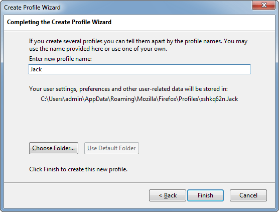 要創建新的配置文件,請單擊創建個人資料按鈕並完成嚮導。唯一重要的選項是配置文件名稱 - 您可以使用默認文件夾位置,除非您想將配置文件文件夾存儲在其他位置。