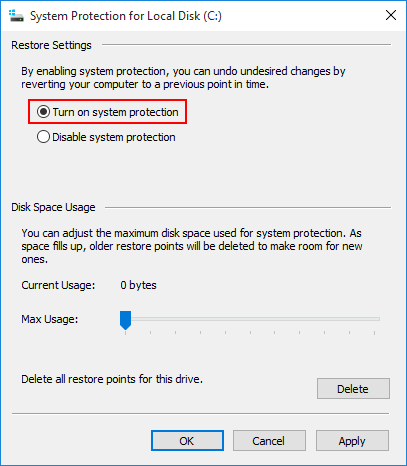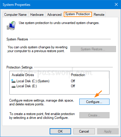 前往系統保護選項卡並單擊配置按鈕。