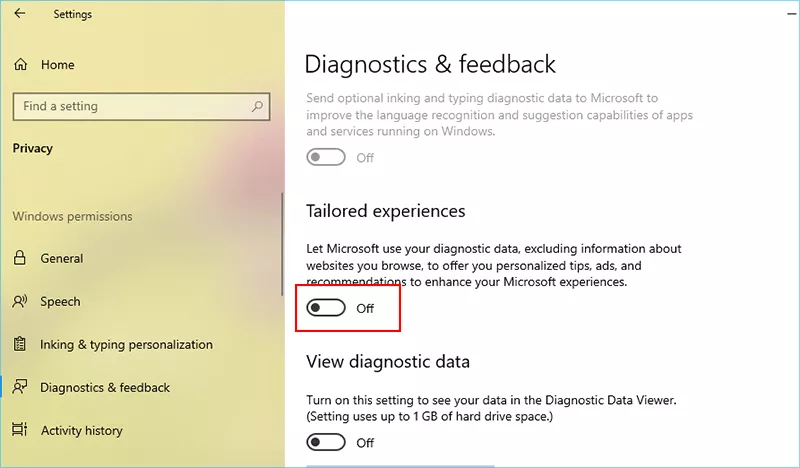 您可以在“診斷和反饋”部分中限制 Microsoft 的數據收集並提高系統隱私性。