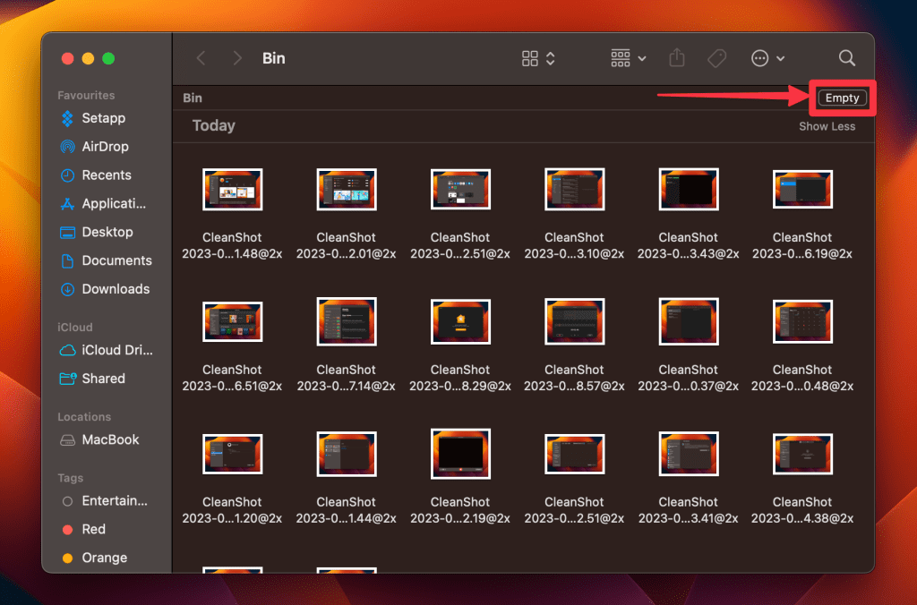 - 要永久刪除文件,請右鍵單擊 Dock 中的 Bin 圖標,然後選擇空箱。