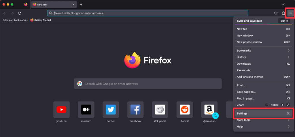 - 單擊菜單圖標 (三條水平線)在瀏覽器的右上角並選擇設定。