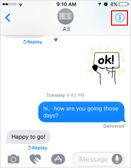 您可以點擊對話右上角的圓形“i”按鈕來查看所有對話附件,然後刪除不再需要的任何媒體。