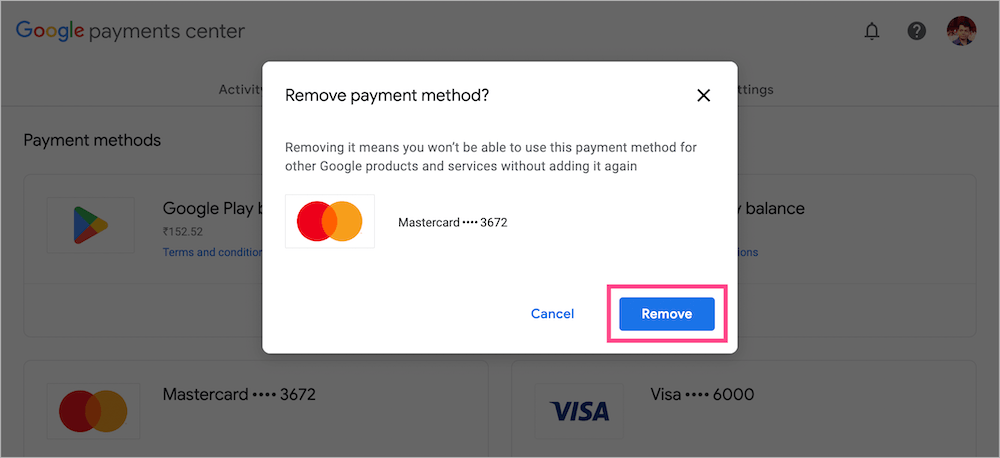 要從計算機上的 Google 帳戶中刪除付款方式,請執行以下操作: