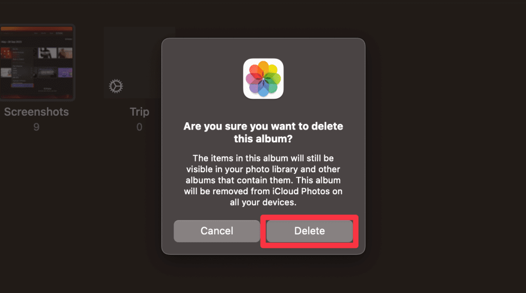 - 右鍵單擊所選相冊並選擇刪除相冊。