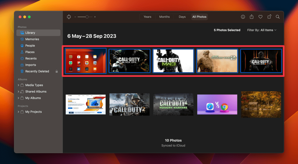 以下介紹瞭如何選擇 Mac 上“照片”應用中的所有照片: