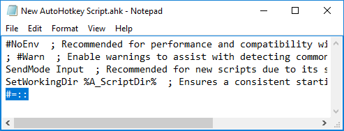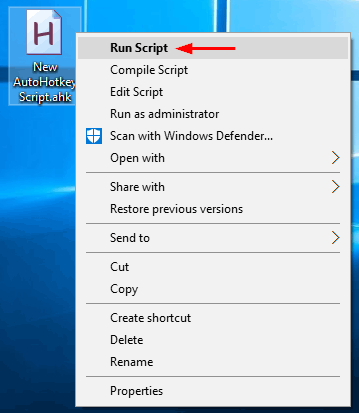 RWin::Return - 保存腳本文件。右鍵單擊它並選擇運行腳本。現在按[Windows] + [+]鍵盤快捷鍵,你會發現什麼也沒有發生。通過這種方式,您可以通過手動運行腳本來暫時禁用所需的快捷鍵。