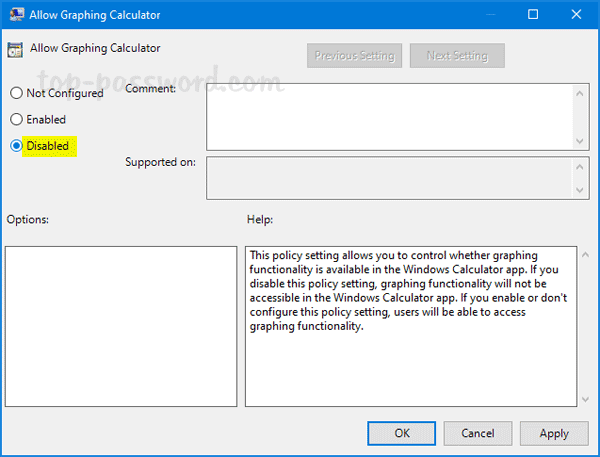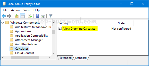 User Configuration -> Administrative Templates -> Windows Components -> Calculator。接下來,雙擊“允許繪圖計算器” 右側的策略。