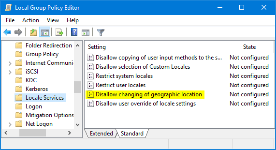 Computer Configuration -> Administrative Templates -> System -> Locale Services