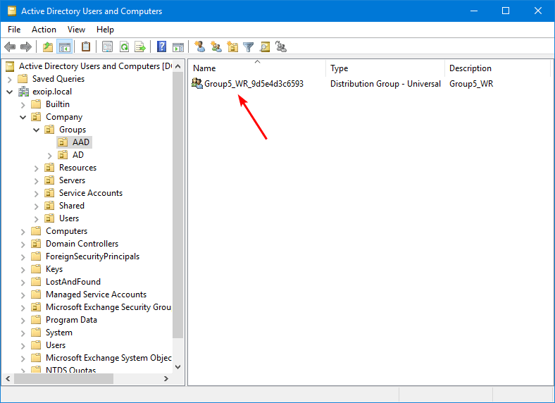 您還可以檢查在本地 Active Directory 中啟用寫回的雲安全組。啟動 Active Directory 用戶和計算機並檢查安全組類型。